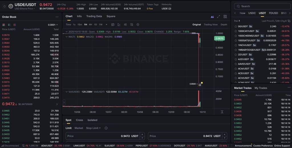 At one point, USDe fell to $0.65 before recovering to parity. Binance later said it had reimbursed users over $283 million for losses related to the incident.