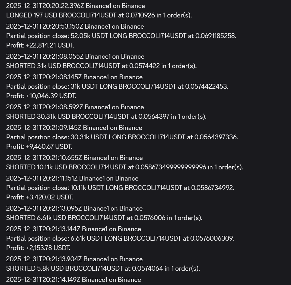 A crypto trader, Vida, realized more than $1.5 million in gains after spotting an anomalous wall of buy orders on Binance for the little-known token BROCCOLI714 on New Year’s Day.
