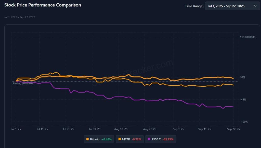 According to Strategy Tracker data, equity investors have been far less enthusiastic about these firms’ shares. Metaplanet’s shares have dropped 63% in the last three months, while Strategy’s stock has slipped 10%.